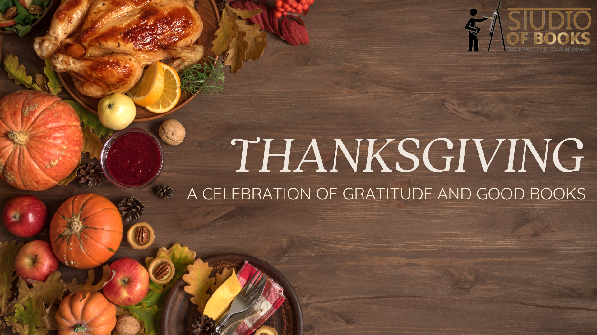 From all of us at Studio of Books, happy Thanksgiving. May your holiday be filled with good food, great company, and wonderful stories.