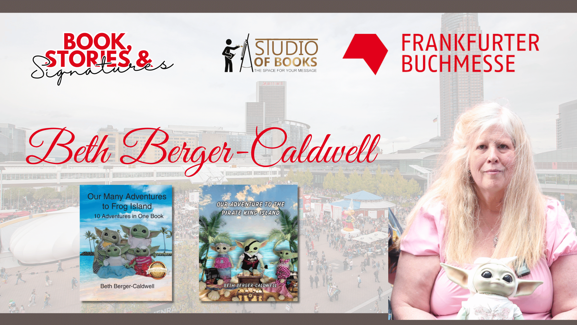 We are excited to share that the book signing event for Beth Berger Caldwell’s books titled “Our Many Adventures to Frog Island: 10 Adventures in One Book,” “Our Adventure to the Pirate King’s Island,” and “Our Adventure to Mermaid Island” at the 2025 Frankfurt Book Fair at Frankfurt, Germany on October 15-19, 2025 was a fantastic success! Fans, readers, and supporters gathered to celebrate the captivating story brought to life.