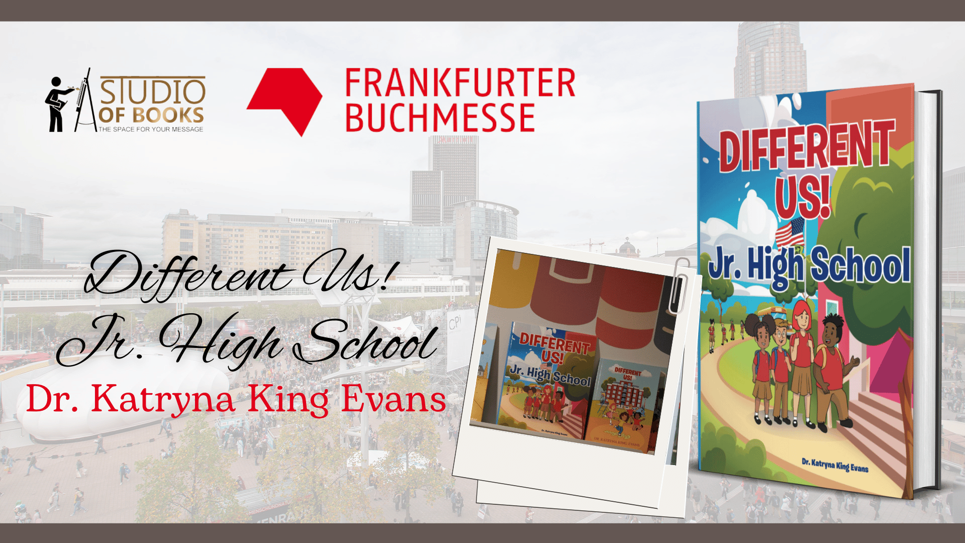 Studio of Books is proud to have “Different Us: Jr. High School” by Dr. Katryna King Evans at the 2025 Frankfurt Book Fair, the world’s largest gathering of publishing professionals and readers, at Frankfurt, Germany on October 15 to 19, 2025. This year’s event welcomed more than 238,000 visitors and over 4,350 exhibitors from around the globe, creating a vibrant space for literary exchange and discovery.