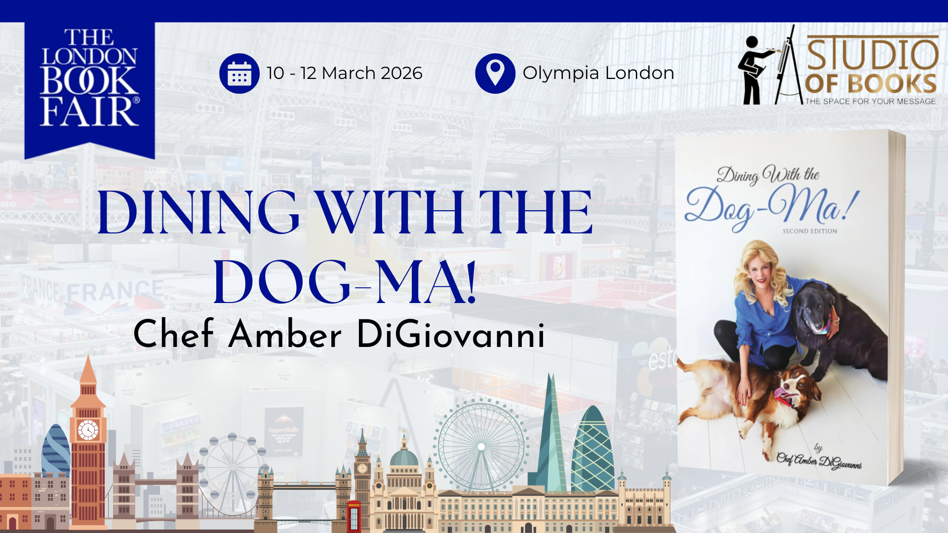 “Dining With the Dog-Ma!” by Chef Amber DiGiovanni stepped onto the international stage at the 2026 London Book Fair, held 10–12 March at Olympia, London. This year, the book fair welcomed 1,005 exhibitors and more than 33,000 visitors.