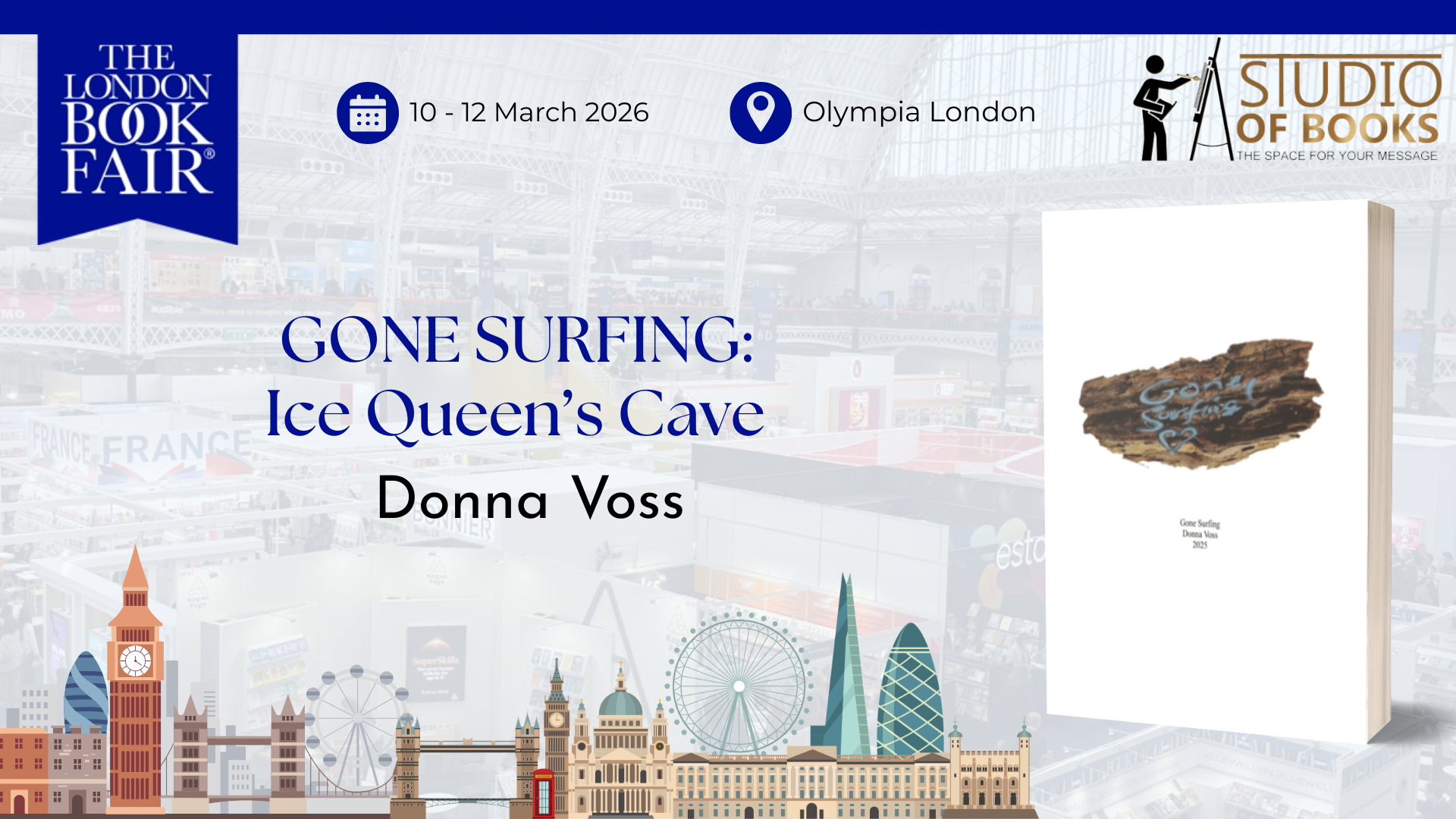 “Gone Surfing!: Ice Queen’s Cave” by Donna Voss stepped onto the international stage at the 2026 London Book Fair, held 10–12 March at Olympia, London. This year, the book fair welcomed 1,005 exhibitors and more than 33,000 visitors.