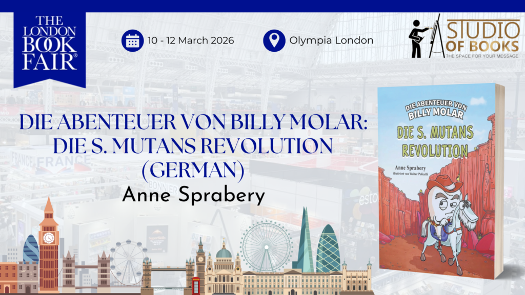Daphne Daughtler | March 16, 2026 “Die Abenteuer von Billy Molar: Die S. Mutans Revolution (German)” by Anne Sprabery was displayed at the 2026 London Book Fair