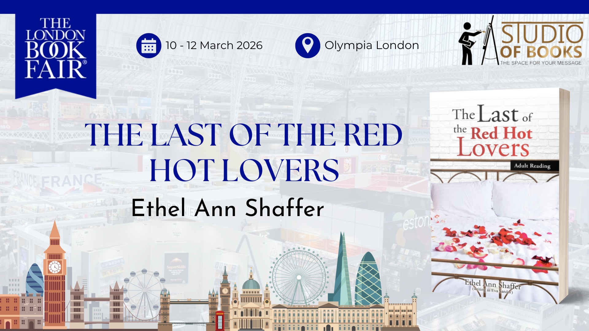 “The Last of the Red Hot Lovers” by Ethel Ann Shaffer stepped onto the international stage at the 2026 London Book Fair, held 10–12 March at Olympia, London. This year, the book fair welcomed 1,005 exhibitors and more than 33,000 visitors.