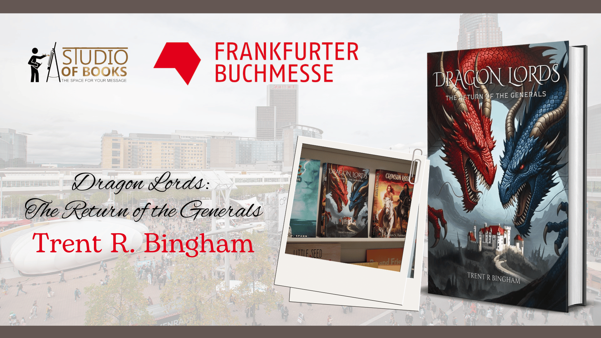 Studio of Books is proud to have “Dragon Lords: The Return of the Generals” by Trent R. Bingham at the 2025 Frankfurt Book Fair, the world’s largest gathering of publishing professionals and readers, at Frankfurt, Germany on October 15 to 19, 2025. This year’s event welcomed more than 238,000 visitors and over 4,350 exhibitors from around the globe, creating a vibrant space for literary exchange and discovery.